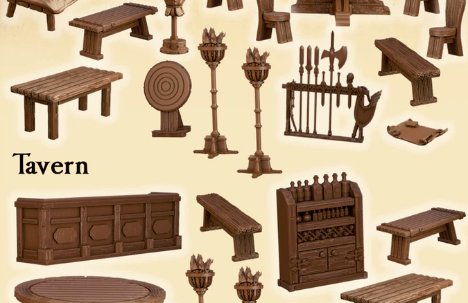 Tabletop World also do some high quality terrain, both scatter and larger buildings. You’ll generally pay a bit more for this, and they are resin so you need to treat them with more care than the hard plastic options, but they look very high end. For me, the larger buildings are where Tabletop World shines, but since we’re talking scatter terrain here, this is part of their furniture set (priced at 18 euros):