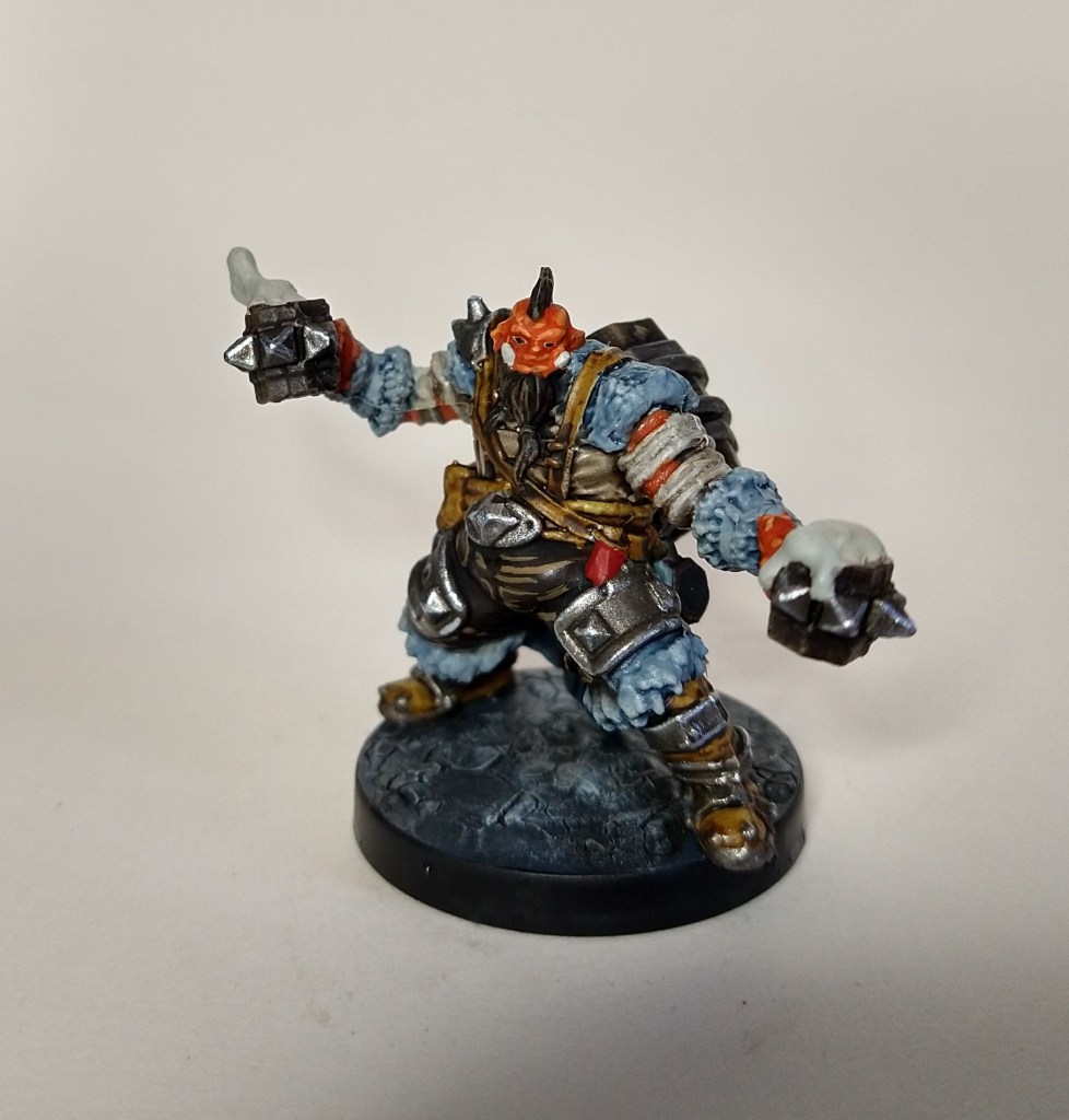 The scale is larger than more usual D&D miniatures. Bases are around 32mm which is slightly bigger than the 25mm squares on the battle maps, the same as the Pathfinder maps (which most DMs I know use). It’s not a huge problem though, and easy enough to work around. You might just imagine that the orcs you’re facing are particularly bulky.