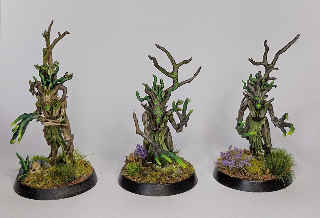 It’s another Sylvaneth project, but this time instead of fiery, they’re bright green. There’s some overlap in technique with my Charred Grove Sylvaneth but otherwise this take on the woodland spirits is one of bursting, rampant growth rather than burning death. Also central to this, since we’re talking forest spirits, is the green glow from eyes, mouths, and anywhere else that looked appropriate at the time.