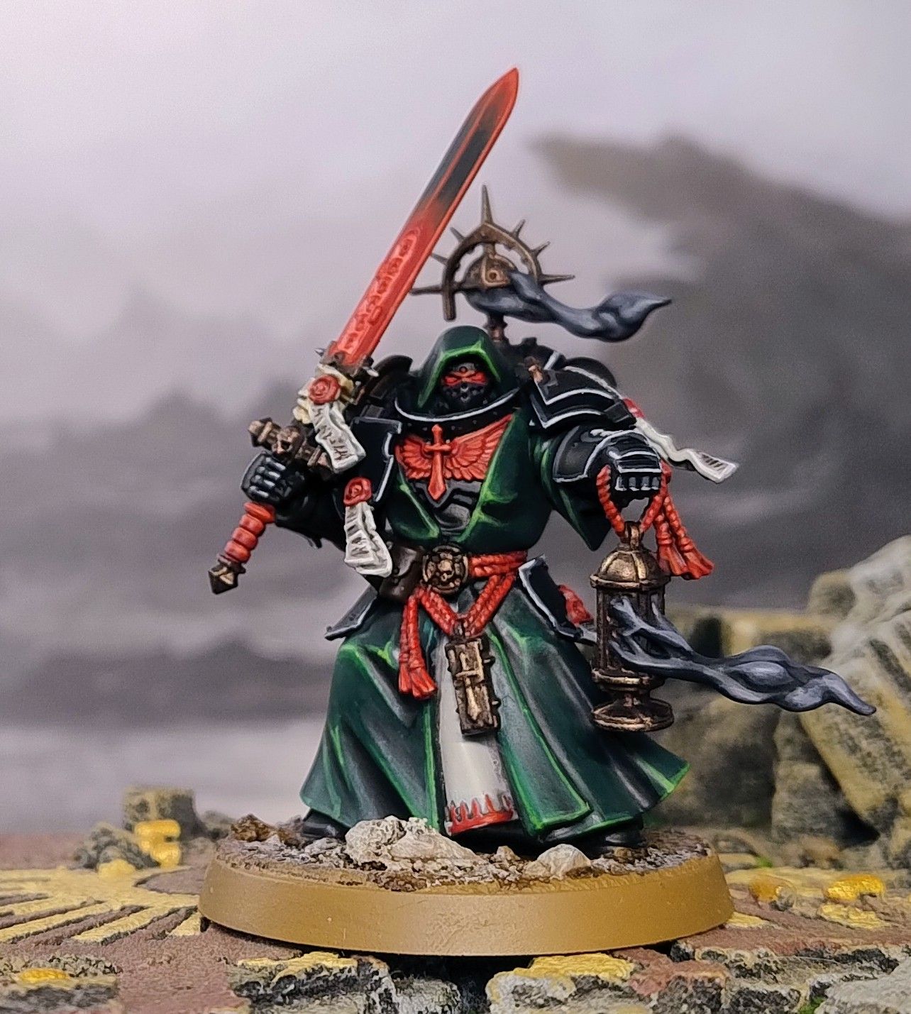 The censers, belt buckles, trim, and other random dangling gubbins use a Warplock Bronze base coat, all over Nuln Oil wash, then a heavy drybrush of Sycorax Bronze. I prefer this look over gold on Dark Angels as it keeps them darker and more mysterious, as though these are relics from a long-forgotten age. There was also a passage in one of the older codexes where one of the Dark Angels Chaplains (I think) talked about eschewing garish baubles.