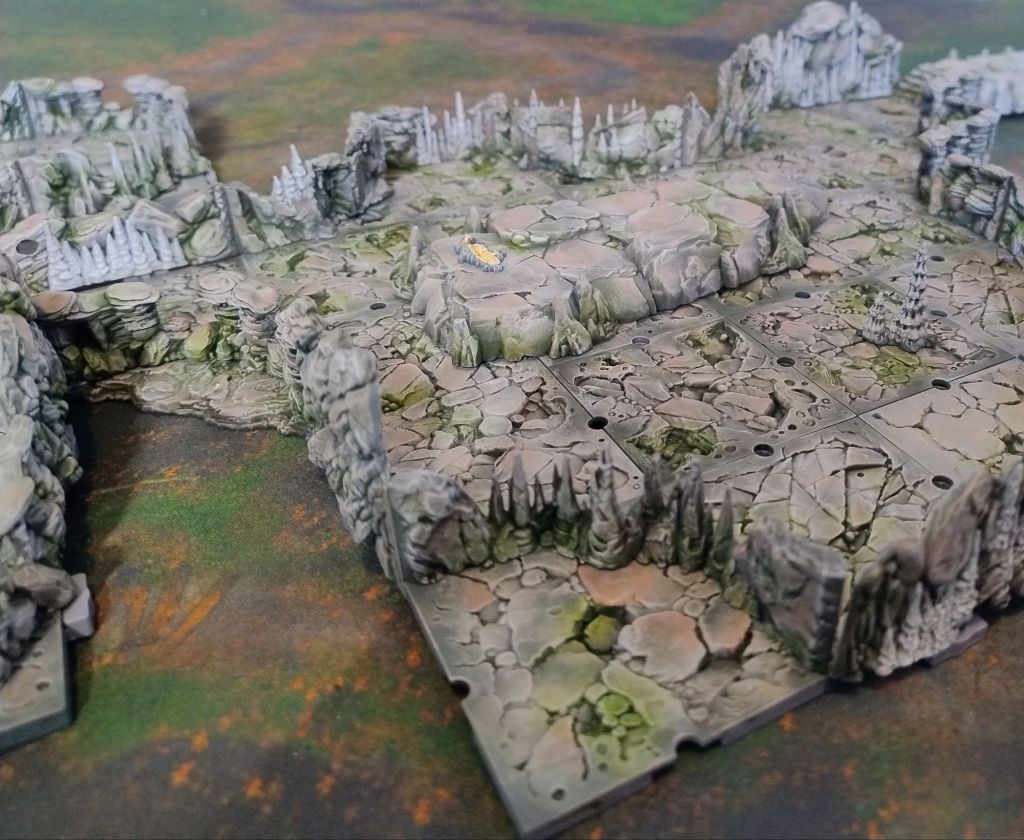 Finally, give the whole thing a light drybrush of GW Ulthuan Grey. This is meant to pick out the sharper edges to really make them pop. Feel free to go heavier with this on stalagmites and stalactites to bring them out further.