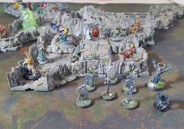 I used minis and scatter from loads of different systems here, like Frostgrave, D&D Minis, Heresy Miniatures, Heroquest, Dungeons and Lasers, and even The Edge (the first game I ever worked on) so the Dungeons and Lasers system is pretty versatile. I like how, while there aren’t gridlines as such, it’s pretty obvious, yet subtle, to identify a 5ft square. The curved walls also make a big difference to the aesthetic of the build, and the clips seem easier to use than previous D&L projects. That’s one thing I like about Archon Studio – they’re always innovating and refining.